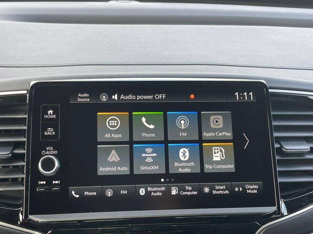 - Radio: 215-Watt Audio System w/7 Speakers -inc: subwoofer, 9" color touchscreen, Bluetooth® streaming audio, Speed-Sensitive Volume Compensation (SVC), wireless Apple CarPlay/Android Auto compatibility and 2.5A USB-A data port in front console, HondaLink, Select HondaLink features are complimentary, 36-month complimentary trials are available for security and remote packages, A subscription is required to continue HondaLink services after the trial ends