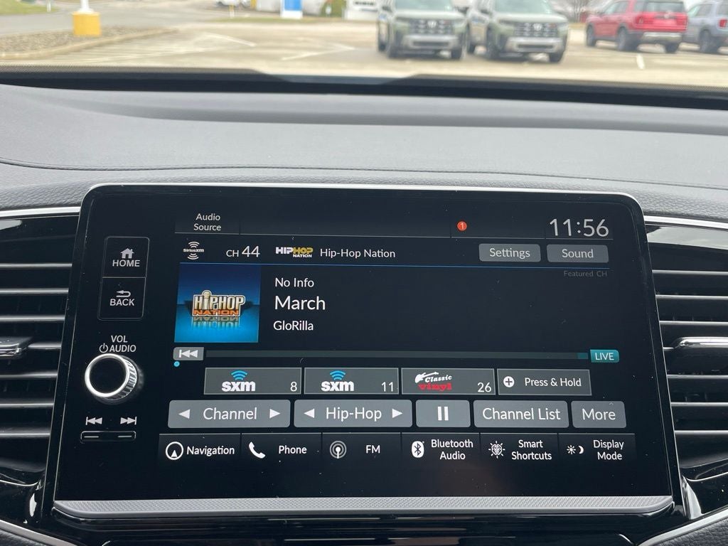 - Radio: 215-Watt Audio System w/7 Speakers -inc: subwoofer, 9" color touchscreen, Bluetooth® streaming audio, Speed-Sensitive Volume Compensation (SVC), wireless Apple CarPlay/Android Auto compatibility, HD Radio and 2.5A USB-A data port in front console, HondaLink, Select HondaLink features are complimentary, 36-month complimentary trials are available for security and remote packages, A subscription is required to continue HondaLink services after the trial ends